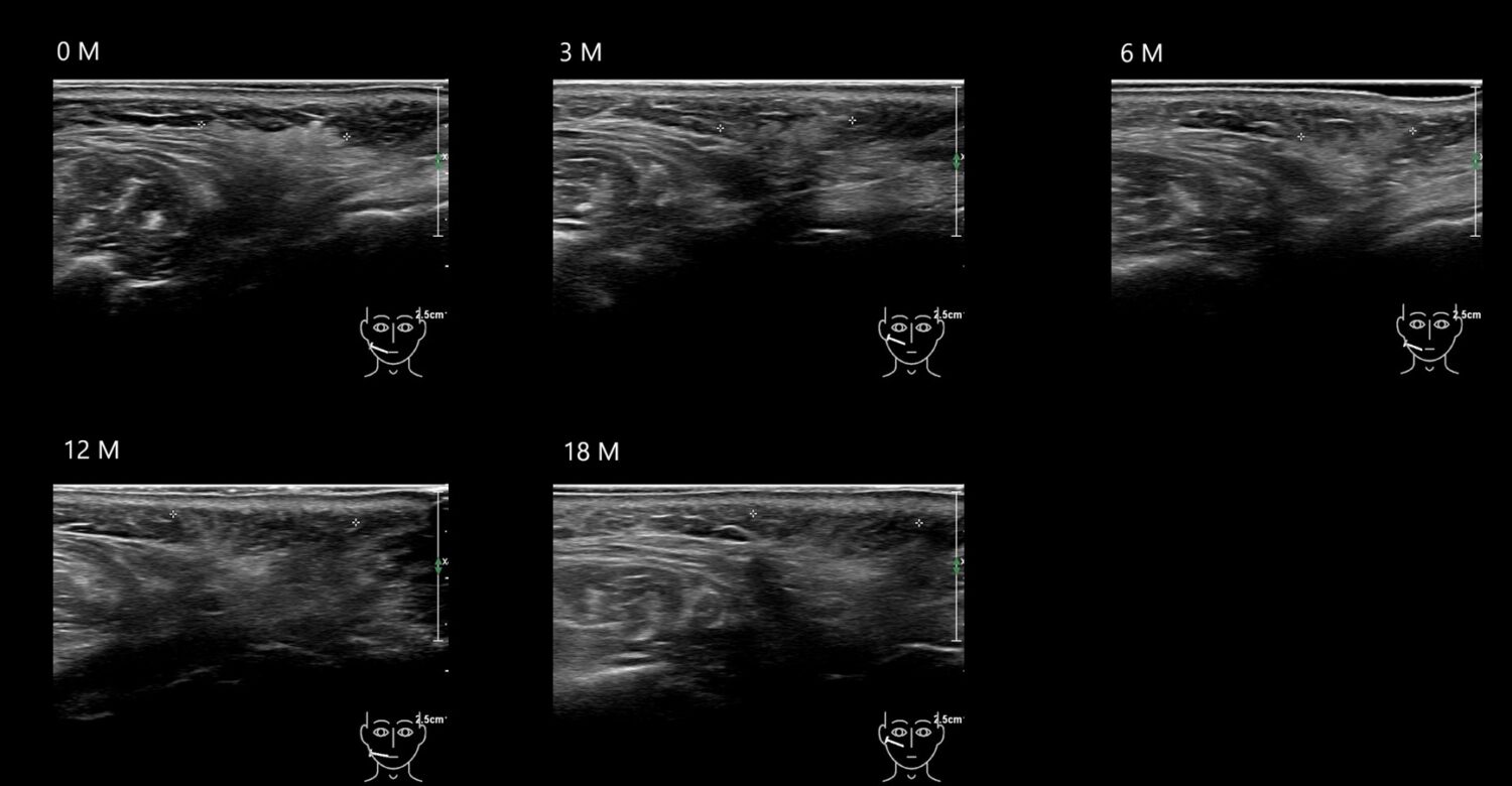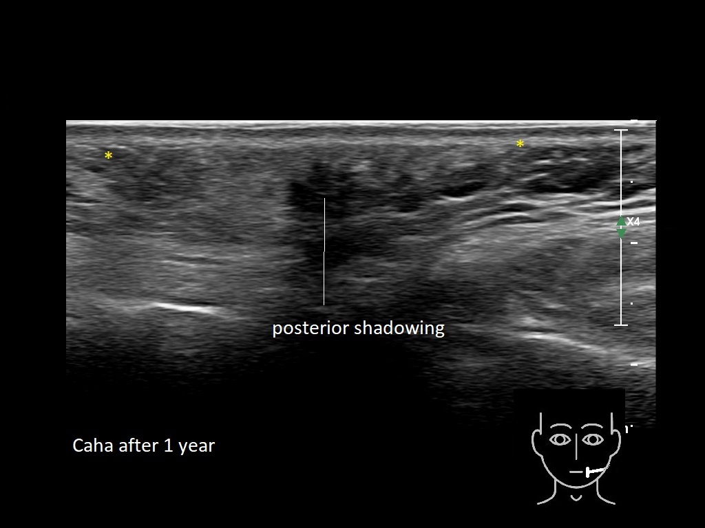 Draw in the second image below where the fillers are located. To check if your answer is correct, swipe the first image to the right.